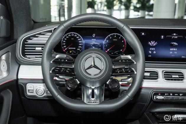 坐进车里,奔驰GLE轿跑AMG内饰采用了圆润可爱的造型,突出了层次效果。该车方向盘造型给人眼前一亮,采用了真皮材质,造型十分的战斗。从中控来看,采用12.3英寸中控屏进行装饰,让内饰风格给人印象深刻,看着相当舒服。最后再来看下仪表盘和座椅,仪表盘设计可圈可点,凸显了新潮的气质。该车采用了真皮座椅,配备了运动风格座椅、副座椅带记忆电动调节、座椅带记忆电动调节、座椅比例放倒等功能,整体舒适度尚可。