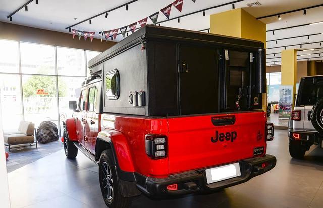 再来看车尾部分,车尾设计以简约实用为主,尾灯组造型小巧,与车头风格呼应。下包围配备粗壮保险杠,两侧集成雾灯,确保恶劣天气下的安全性。货箱部分通过原厂旅居改装,实现了从皮卡到移动之家的转变,既保留了角斗士的越野基因,又满足了露营需求。这种设计避免了后期改装的协调性问题,体现了Jeep对户外场景的深刻理解。