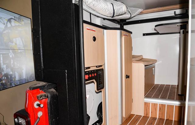 新车的房箱采用密封式设计,隔音隔热性能优异,无惧风雨天气影响,通风窗口搭配防虫网,保障空气流通的同时避免蚊虫进入。全车储物空间规划合理,兼顾驾乘与旅居场景收纳需求,既适合两人短途露营,也能满足多日长途旅居的物资储备,实现“一车两用”的空间灵活性。